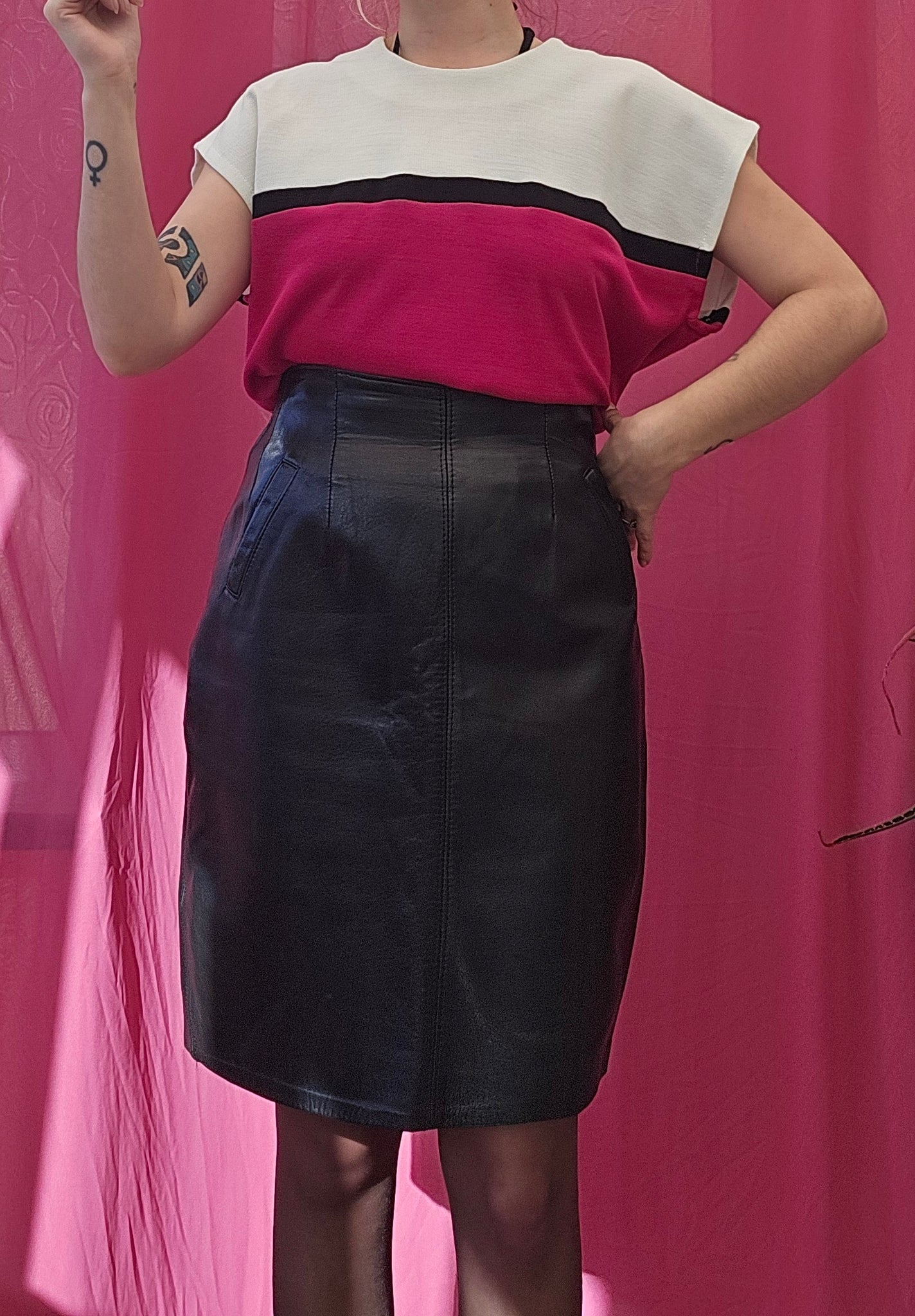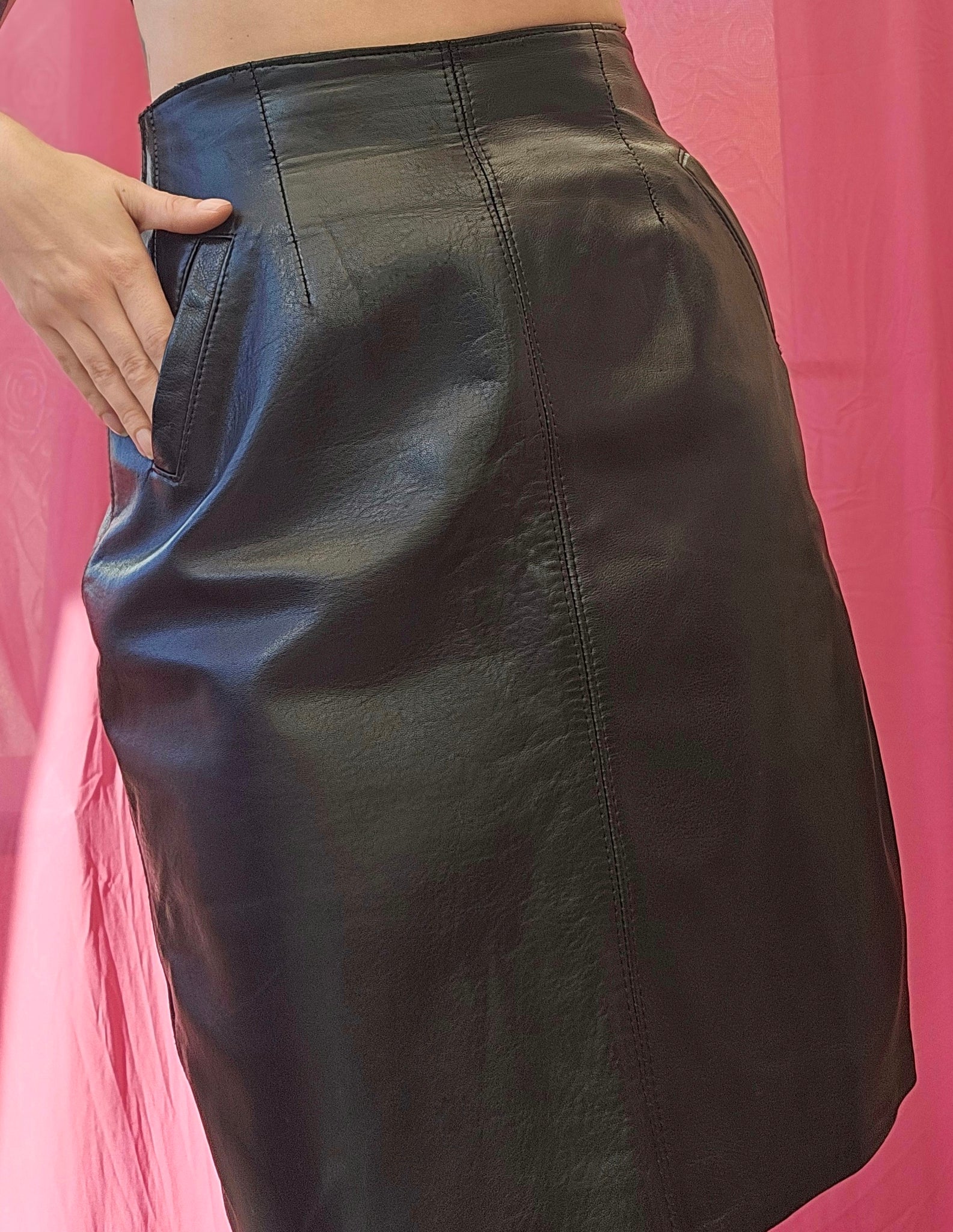 80s High Waisted Leather Skirt